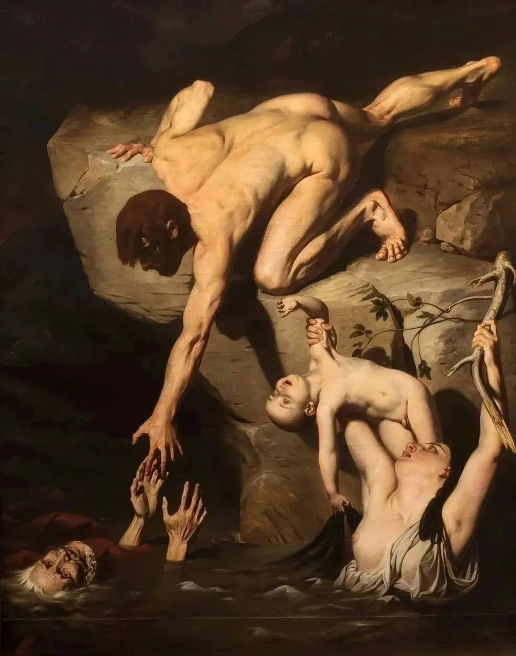 Однако художник Жозеф-Дезире Кур в своей работе «Сцена великого потопа» отказывается от привычного сюжета спасения. Он переносит внимание не на героя, а на человека — на его выбор, слабость и внутреннюю драму.